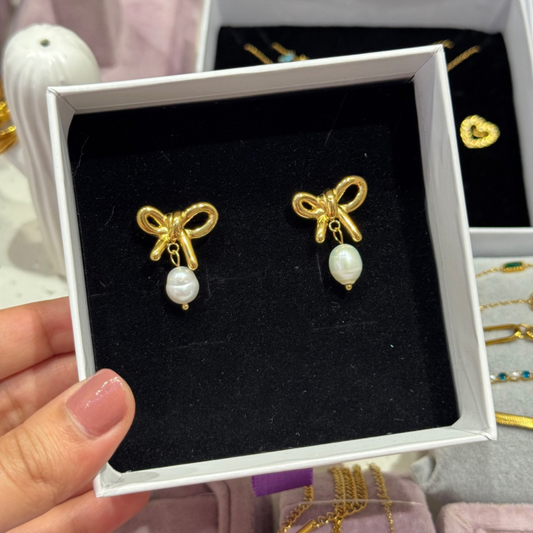 Bow pearl earrings